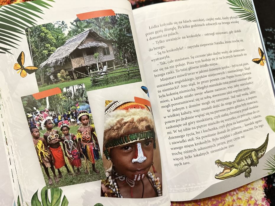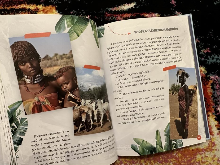 Mała Natalka wraz z bratem Wiktorem poznają ciekawych ludzi, ich kultury i obyczaje. Smakują lokalną kuchnię, nocują w nietypowych miejscach i podróżują różnymi środkami transportu. Wraz z nimi młodzi czytelnicy będą mogli poznać plemiona Dani, Asmatów, Korowajów, Mursi, Hamerów, Karo, ludzi z wioski Masajów, Aborygenów, i będą mogli podziwiać autentyczne zdjęcia z miejsc odwiedzonych przez panią Dzikowską.