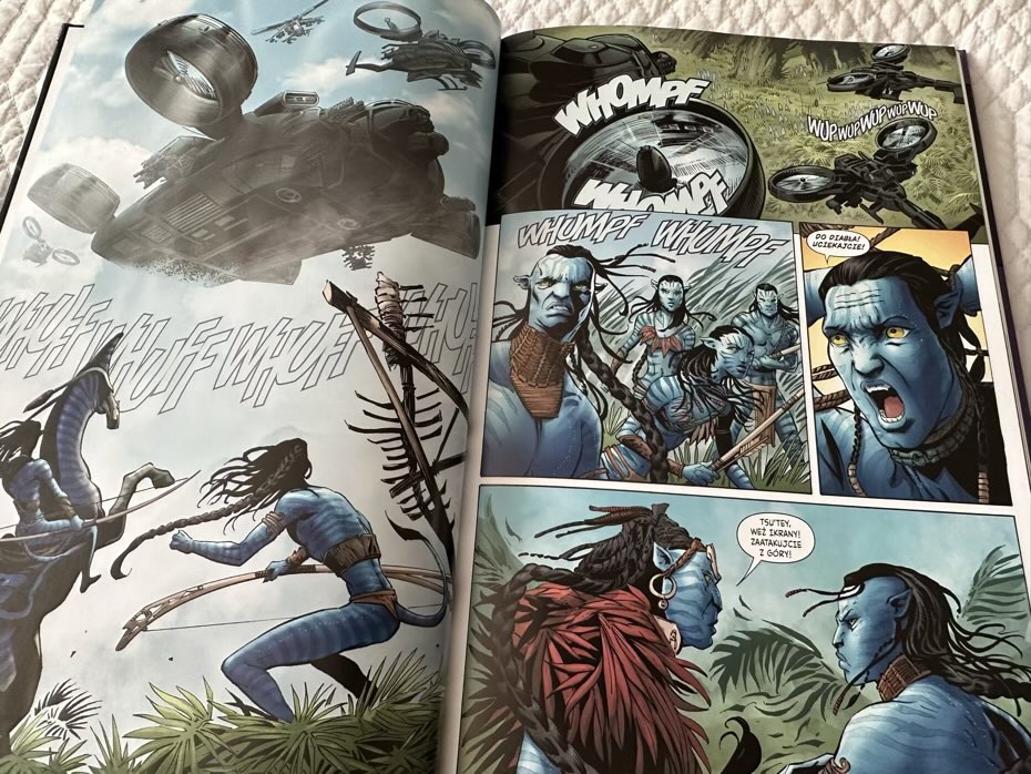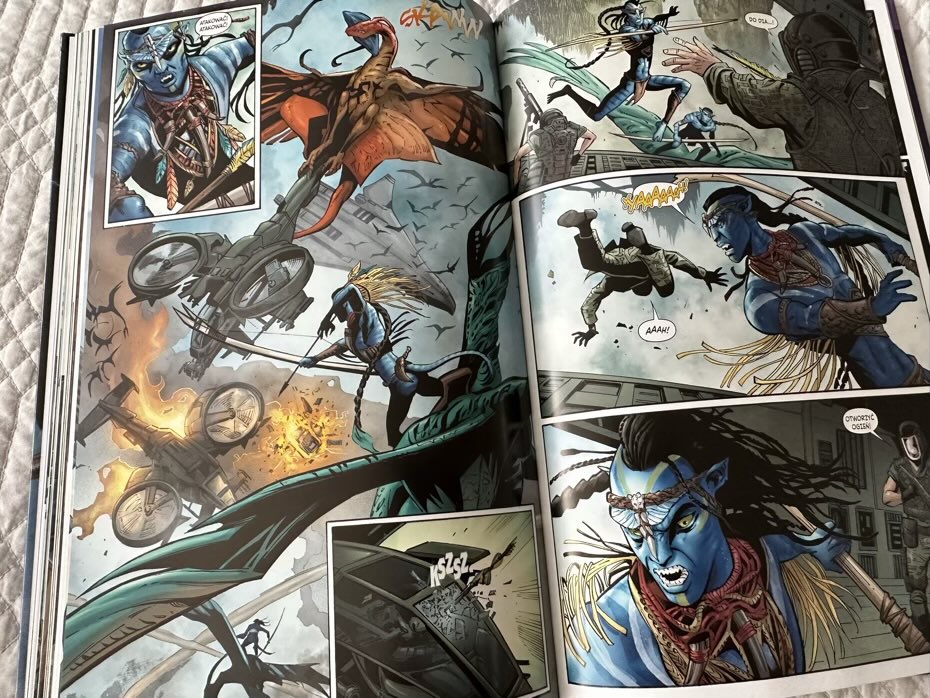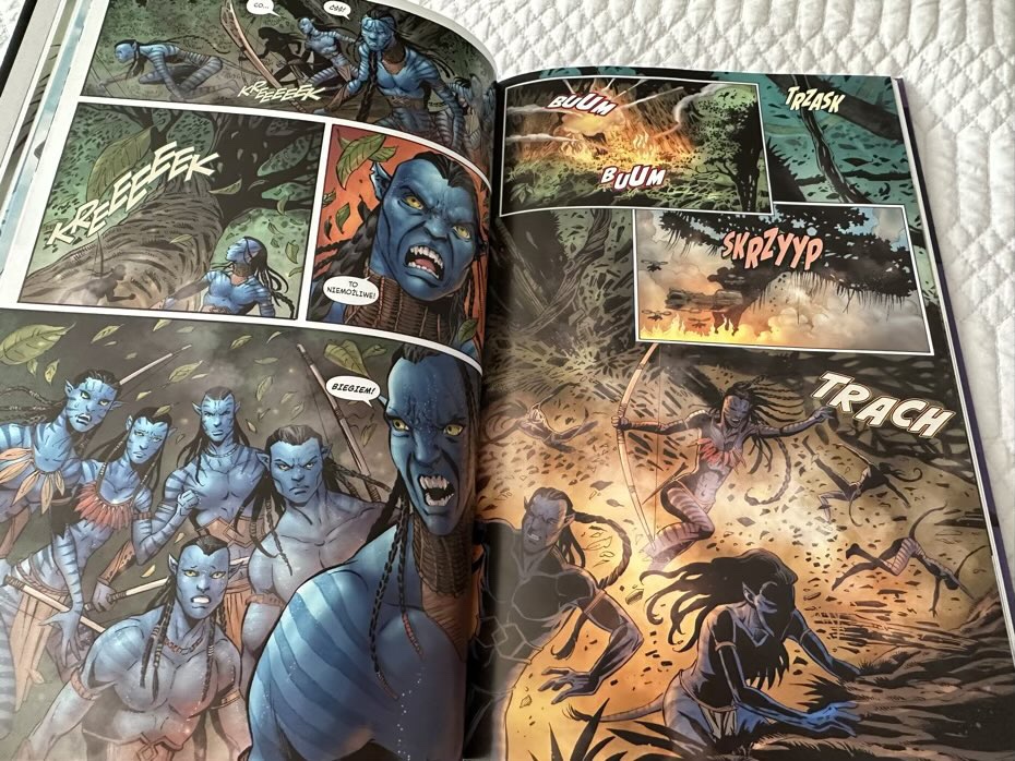 Czy polecam komiks bez uprzedniego oglądnięcia hitowego Avatara? Myślę, że nie. Młodzi czytelnicy nie pojmą, o co chodzi w świecie Pandory, dialogi są trochę zbyt chaotyczne. Nie jestem jednak przekonana, żeby oglądnięcie filmu (polecanego od 12. roku życia) pomogło w zrozumieniu tego komiksu, ponieważ między kadrami dzieje się zbyt wiele akcji, której trzeba się domyślić.