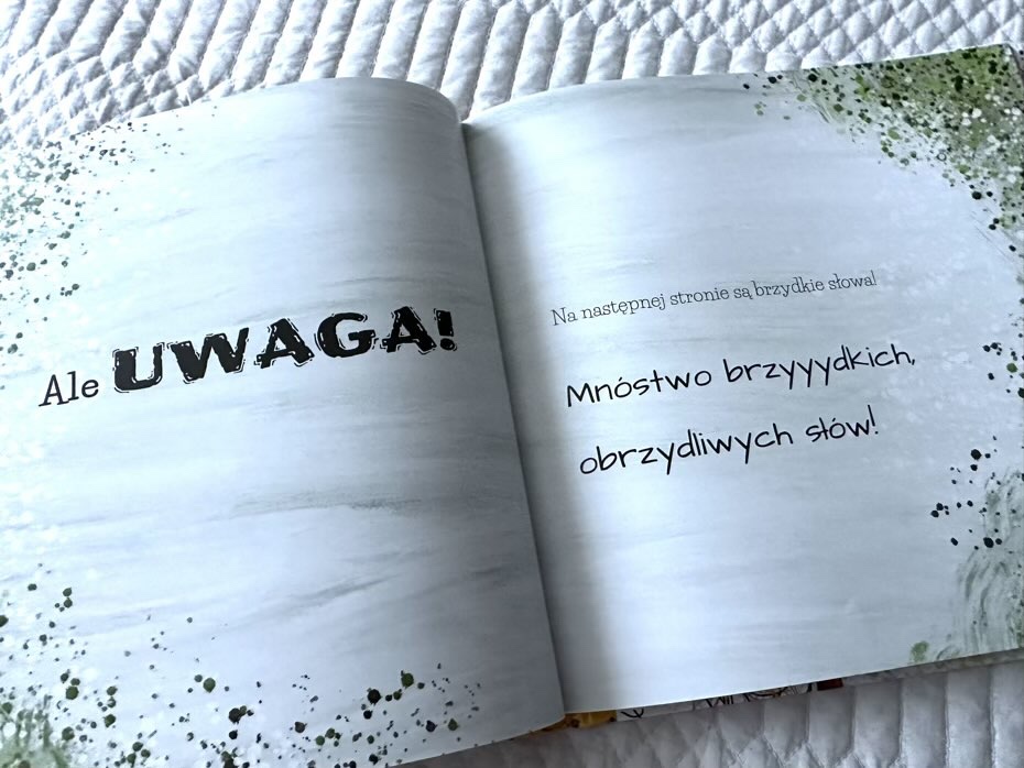 Chylę czoła autorce za pomysł na książkę. Hasła są trafne i prowokujące. Zaskakujące jest, że pomimo zakazów, ciekawość jest silniejsza. Chcąc nie chcąc i tak zerkamy na kolejną stronę, aż dojdziemy do KOŃCA! Choć ostatnie hasło brzmi: „O nie! To dziecko przeczytało mnie do końca! Oby tylko nie próbowało jeszcze raz!”. Myślę, że sporo małych czytelników podejmie się wyzwania i zacznie od początku.