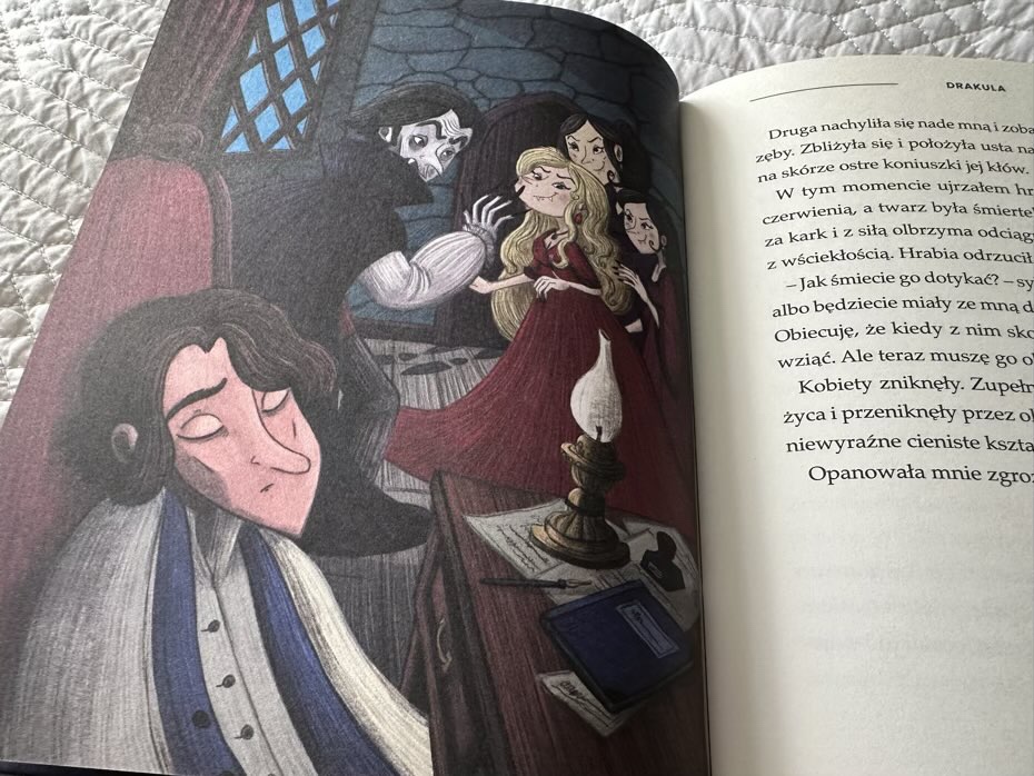 „Drakula. Ilustrowana klasyka literatury” to idealna lektura dla początkujących wielbicieli literatury z dreszczykiem. Ta ilustrowana, skrócona wersja powieści Brama Stokera jest przeznaczona dla młodych czytelników powyżej 9. roku życia. Książka zachowuje esencję oryginału, jednocześnie czyniąc ją przystępną i wciągającą dla dzieci. Według mnie to wspaniały sposób, w jaki młodzi odbiorcy mogą doświadczyć tej ponadczasowej opowieści o odwadze i walce światła. Polecam.
