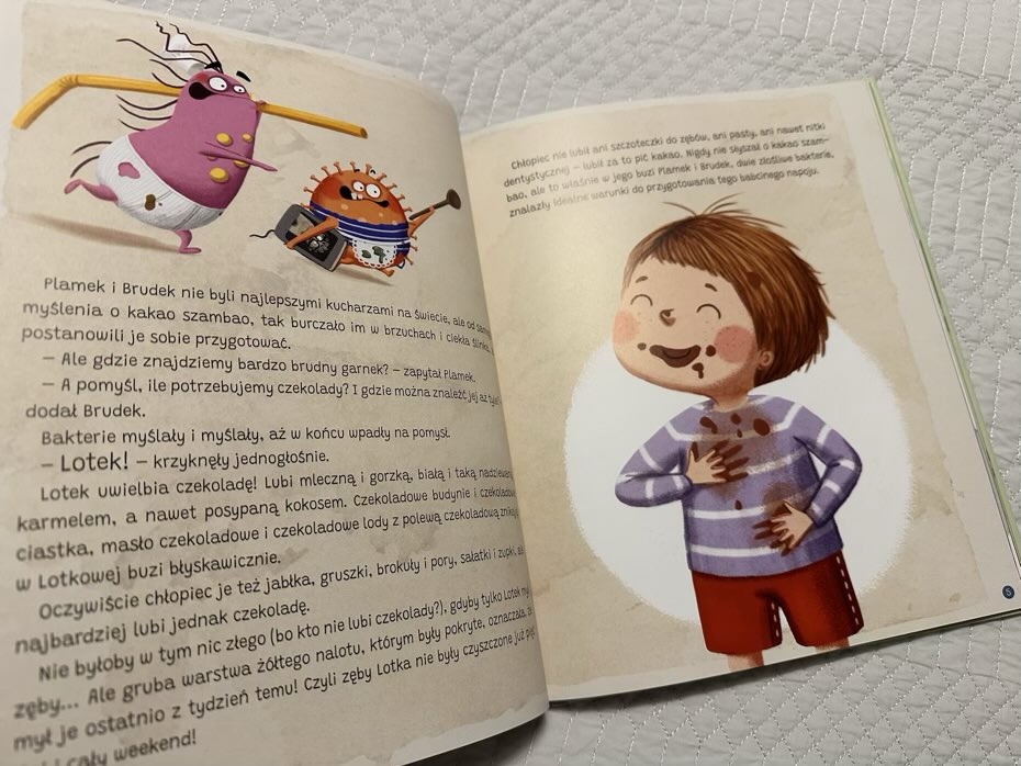 “Plamek i Brudek. Kakao szambao” to tytuł ukazany nakładem Wydawnictwa Zielona Sowa. Zachęca młodych czytelników, jednocześnie tłumacząc, jakie konsekwencje dla zdrowia ma brak dbania o higienę. Rysunki są przyjazne i kolorowe, a treść zabawna i wciągająca. Myślę, że książka przypadnie do gustu dzieciom już od 5. roku życia.