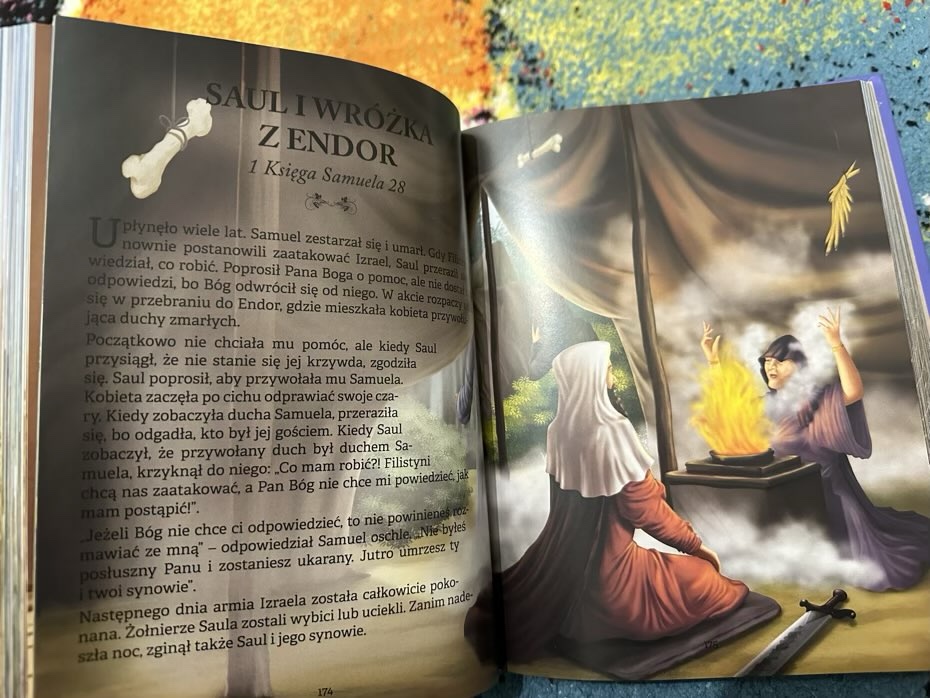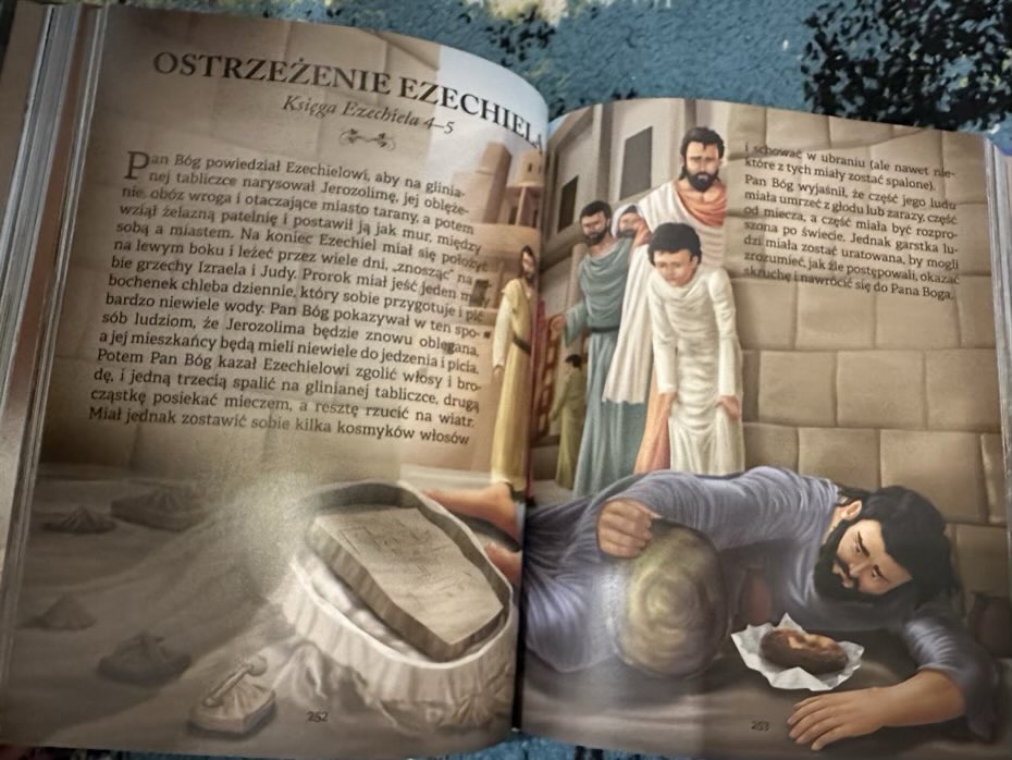 Każda strona jest pięknie przedstawiona i naprawdę oddaje szczegóły i znaczenie fragmentów, które napisane są prostym językiem.