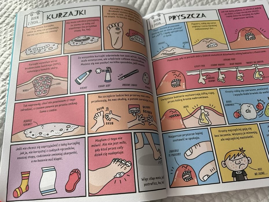 „Dzień z życia skunksa, jelita i tego, kto to czyta” to książka popularnonaukowa dla dzieci w formie zabawnego komiksu.