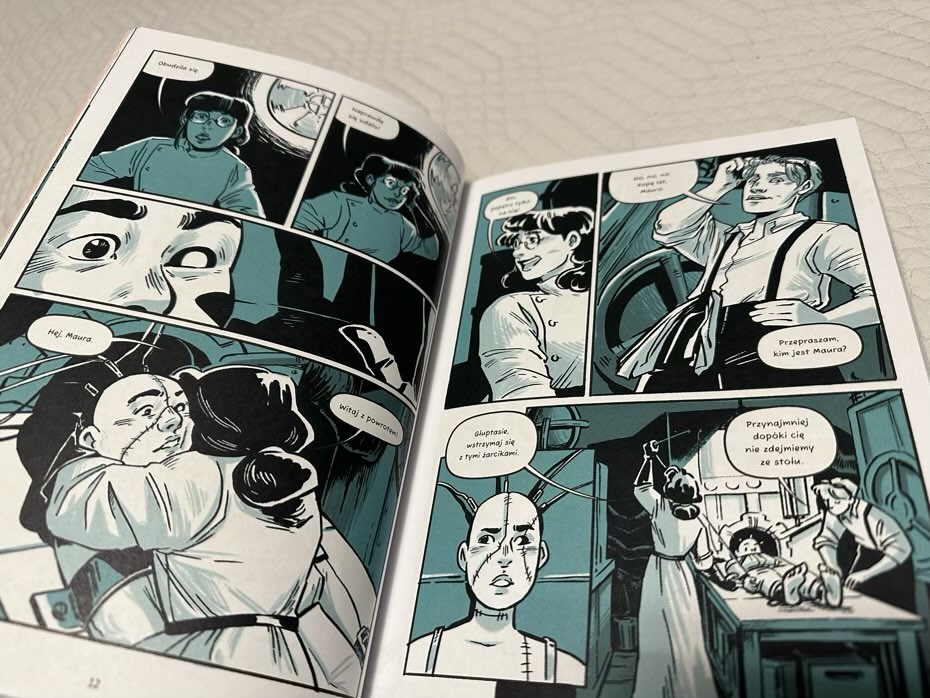 „M jak monstrum” to poruszające i przemyślane spojrzenie na tożsamość, które na nowo przedstawia historię Frankensteina w naprawdę świeży i pomysłowy sposób. Opowieść jest bogata i wyrazista, z odważnymi ilustracjami, które przywołują na myśl połowę XX. wieku i są wykonane w palecie turkusu, czerni i bieli. Całość czyta się ekspresowo. Książka wydana została w miękkiej oprawie i ukazała się dzięki Wydawnictwu Nasza Księgarnia.