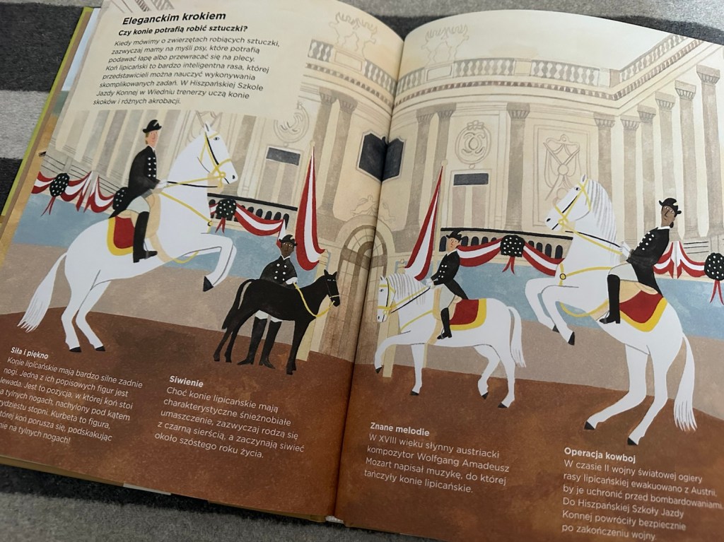 Ta publikacja to urocze połączenie zoologii, historii i kultury, które celebruje, dlaczego konie są tak ukochanymi towarzyszami ludzi od wieków. Jest też ciekawym przeglądem historii koni, ich pielęgnacji i zawodów z nimi związanych.