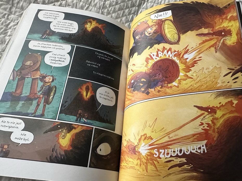 „Cień ptasich skrzydeł” to idealny komiks dla młodych czytelników od lat 8. Fabuła jest dobrze napisana i wciągająca, z dobrą dawką humoru. Książka trzyma młodych czytelników w napięciu od początku do końca. Ilustracje są fantastyczne i stanowią wizualną ucztę, która zachwyci dzieci i utrzyma ich zaangażowanie w historii. Kolorowe i szczegółowe kadry stanowią doskonałe uzupełnienie historii i pomagają ożywić świat Lightfall. Polecam.