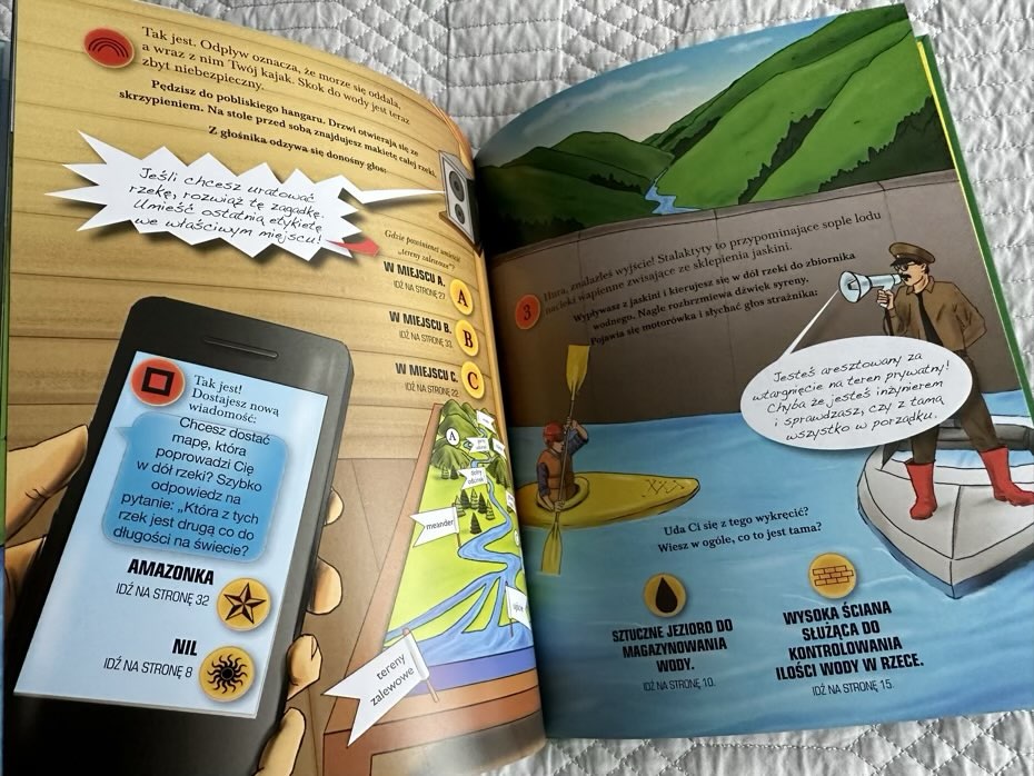 “Rwąca rzeka. Zagadki geograficzne” to niezwykła książka autorstwa Johna Townsenda. Nie jest to typowa lektura, ponieważ nie czyta się jej po kolei. Zamiast tego, wraz z rozwojem wydarzeń, skacze się po stronach do przodu i tyłu. Jeśli się zgubi, historia sama naprowadza na właściwy szlak.