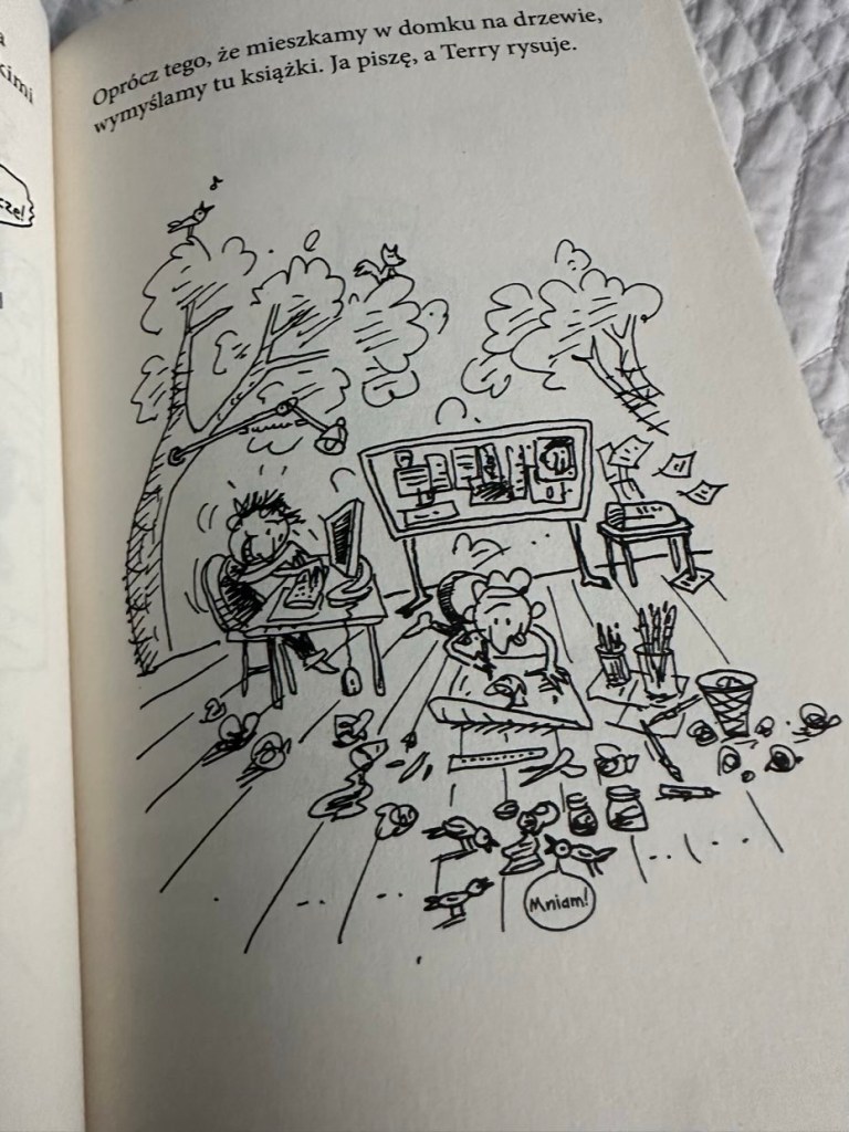 „13-piętrowy domek na drzewie” to bardzo wciągający tytuł. Struktura narracyjna pozwala wzbudzić zainteresowanie nawet tych czytelników, których normalnie trudno zaangażować. Rozdziały są krótkie, niektóre mają duże podziały stron, inne zawierają kilka słów lub po prostu zabawne ilustracje. Rysunki Terry’ego doskonale uzupełniają i wzbogacają tekst oraz są pełne nieoczekiwanych szczegółów.