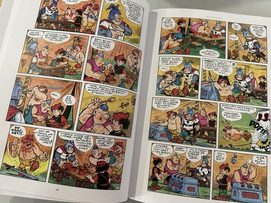 Od samego otwarcia okładki, czytelnik jest zanurzony w magiczny świat osadzony w średniowieczu, gdzie rycerze, “czary” i zabawne bójki to codzienność. Ilustracje, odświeżone i dopracowane, wciągają w świat Kajka i Kokosza jeszcze bardziej, nadając historiom nowego blasku i wyrazistości.