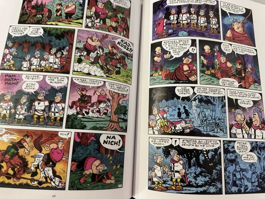 Zapewniam, że ta seria jest prawdziwą gratką dla miłośników humoru i przygód. Osobiście uwielbiam te śmieszne potyczki Kajka i Kokosza z rycerzami (Czarnymi Trójkątami). Ich nieustające próby zawładnięcia ziemią Księcia Mirmiła dostarczają niezapomnianych chwil śmiechu i napięcia. Kiedy razem z synkiem wciągnęliśmy się w lekturę tego tomu, nie mogliśmy się oderwać od kolejnych stron. Już planujemy zakup kolejnej części, by kontynuować naszą podróż po fantastycznym świecie Kajka i Kokosza. Ta seria z pewnością zagości na naszej półce na długo.