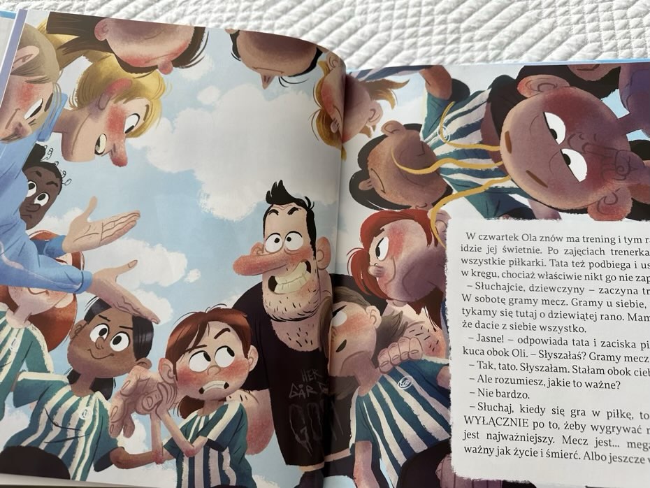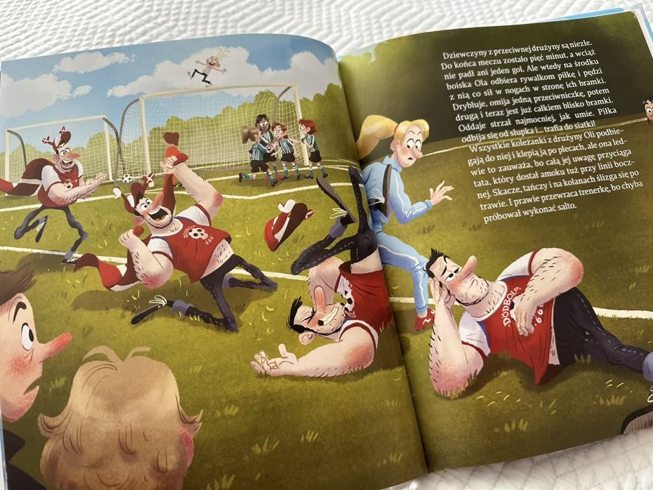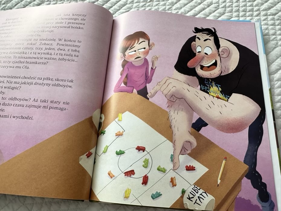 “Tata Oli i piłkarska gorączka” to książka przesiąknięta dobrym humorem, wyważonym dowcipem i prowadzona w naturalny oraz angażujący sposób. Ta zabawna opowieść dla najmłodszych pozwala dziecku ujrzeć świat rodzica z zupełnie innej perspektywy. Ilustracje Thorbjørna Christoffersena dodają uroku, a treść skłania do przemyśleń o niespełnionych ambicjach dorosłych i wspólnie spędzonym czasie.