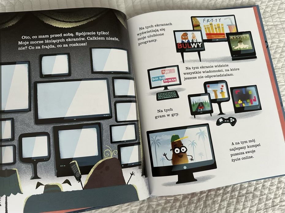 Autor zręcznie ukazuje w swej opowieści znaczenie równowagi między technologią a rzeczywistym życiem, przypominając, że choć ekran może być kuszący, to prawdziwa przyjemność i spełnienie płyną z relacji z innymi ludźmi i otaczającym nas światem. Dodatkowym atutem lektury są pełne humoru ilustracje autorstwa Pete’go Oswalda, które doskonale przedstawiają charakterystyczny styl opowieści i dodają dodatkowej warstwy zabawy dla czytelników.