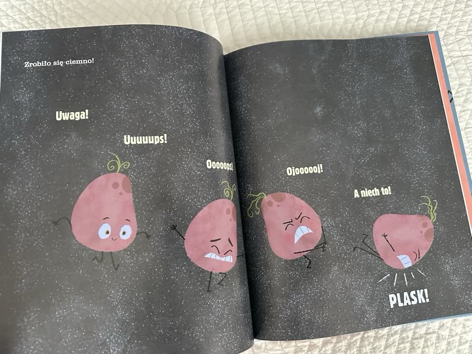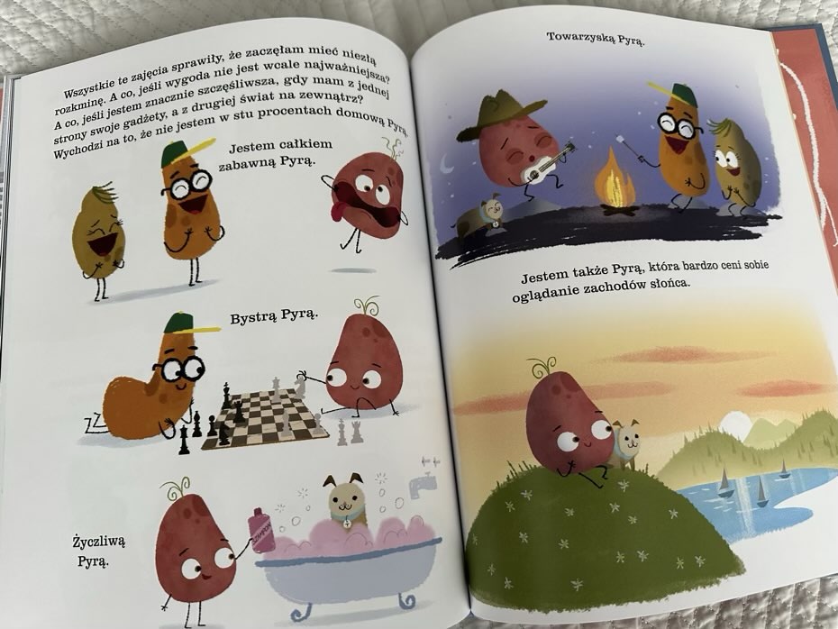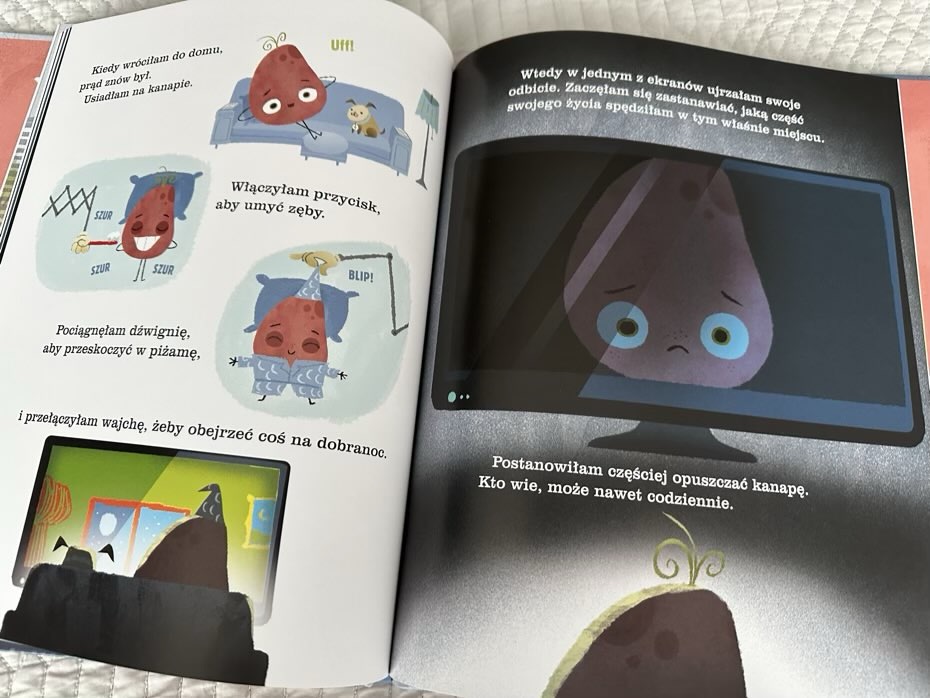 Tytuł prowadzi młodego czytelnika w podróż do wnętrza domu kartofla o imieniu Pyra. Na pierwszy rzut oka wydaje się, że Pyra ma wszystko, czego tylko dusza może zapragnąć: wygodną kanapę serwującą przekąski i napoje oraz mnóstwo ekranów dostarczających rozrywki i emocji. Jednak czy to naprawdę jest wszystko, czego potrzebuje?