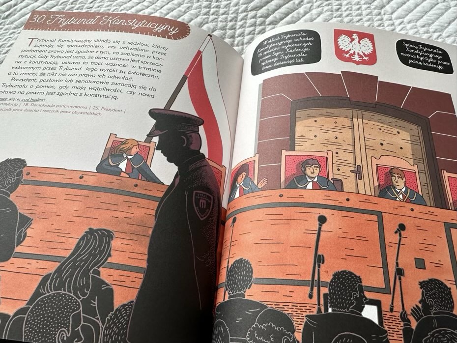 Książka opowiada o ważnych wydarzeniach, takich jak uchwalenie Konstytucji 3. maja czy obrady Okrągłego Stołu. Przedstawia również historię Rzeczypospolitej Obojga Narodów oraz innych ustrojów. Młodzi czytelnicy dowiedzą się, co jest zapisane w konstytucji, kto może głosować, po co są partie polityczne. Stanie się dla nich jasne, czym zajmuje się prezydent, a czym premier, za co odpowiada sejm, a za co senat. Dowiedzą się, co jest zapisane w konstytucji i jakie są prawa obywateli.